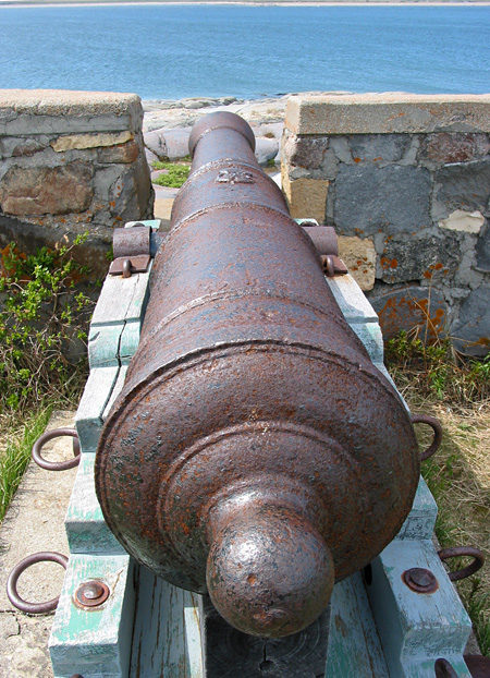 A cannon at the Cape Merry Battery, where the Hudson's Bay Company men waited, and watched, and waited for the French to come. But they weren't very happy when that finally happened.