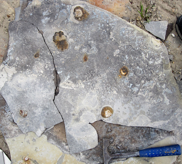 6. Rotate slab surface carefully in the blinding light, trying to determine if it holds any interesting fossils;