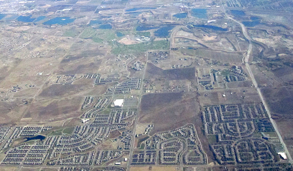 Subdivisions form tidy patterns on the outskirts of Denver. This photo and the subsequent ones are ordered to provide an aerial view of my return flight from Denver to Winnipeg, in the clear weather that followed the storm.