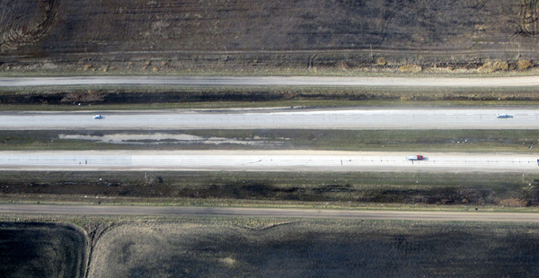 Square mile sections on the North Dakota and Manitoba prairie have a geometric perfection when seen from great height.