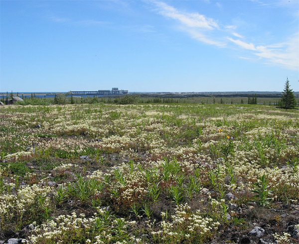 At the peak of summer, the Port of Churchill is viewed through a field of wildflowers on the east side of the Churchill River ...