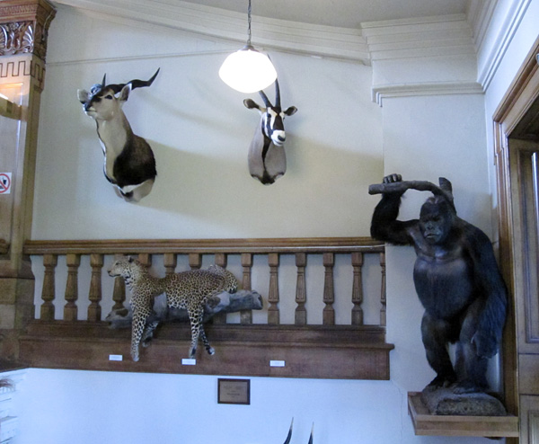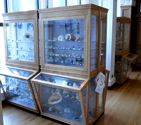 These biodiversity exhibits are located in and around beautiful casework at the end of the gallery, though the sunlight is hard on the mounts.