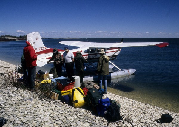 How are we going to fit all the people, gear, and fossils into two small floatplanes? (photo © David Rudkin, Royal Ontario Museum)