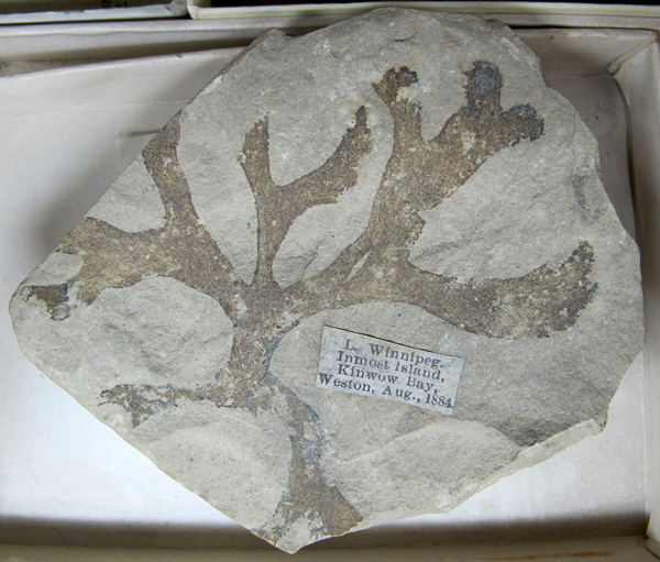 Long before we visited Inmost Island, the GSC's intrepid T.C. Weston had been there! This is an Ordovician alga (seaweed).