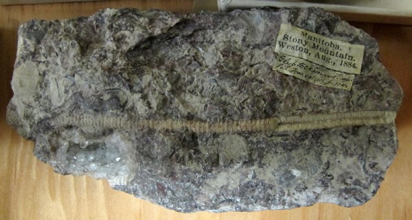 An Ordovician crinoid stem from Stony Mountain (north of Winnipeg), collected by T.C. Weston