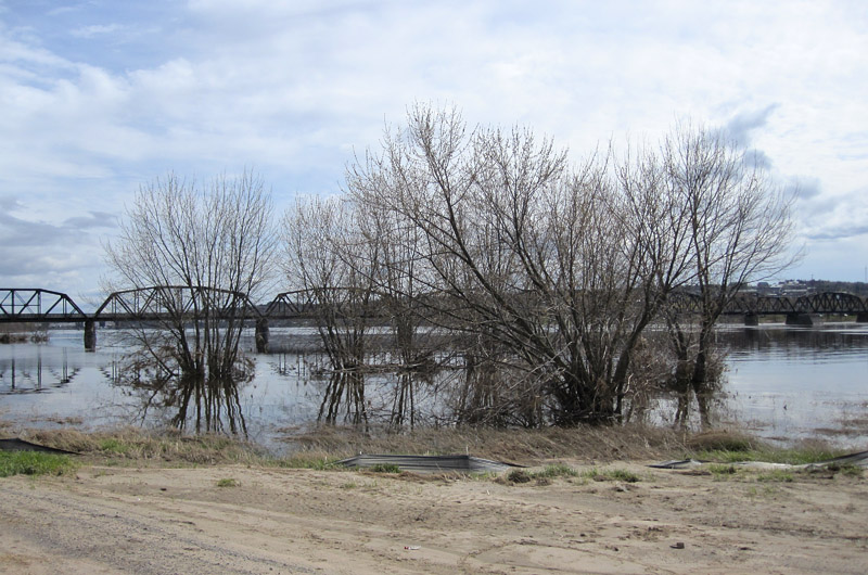 Willows surrounded by receding floodwater
