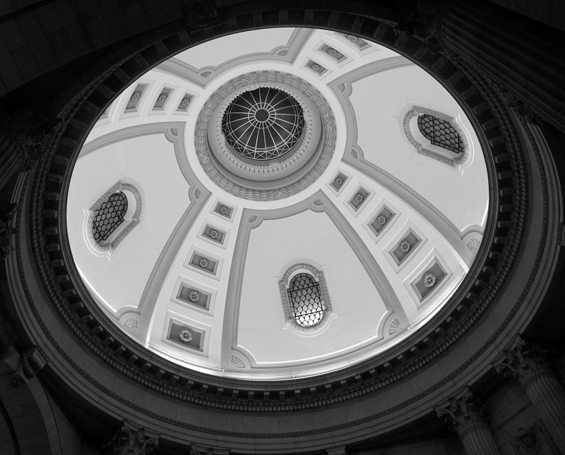 The Legislative Building (or “The Leg” as it is often called*) is such a common sight to commuting Winnipeggers that most of us probably barely think of it, but it is a gem, both architecturally and geologically. Opened in 1920, the Legislative Building is commonly described as a neoclassical structure, but its detailing betrays a bit of Beaux-Arts exuberance, and the statuary is a strange melange of Canadian history and classical, Egyptian, and prairie mythology.