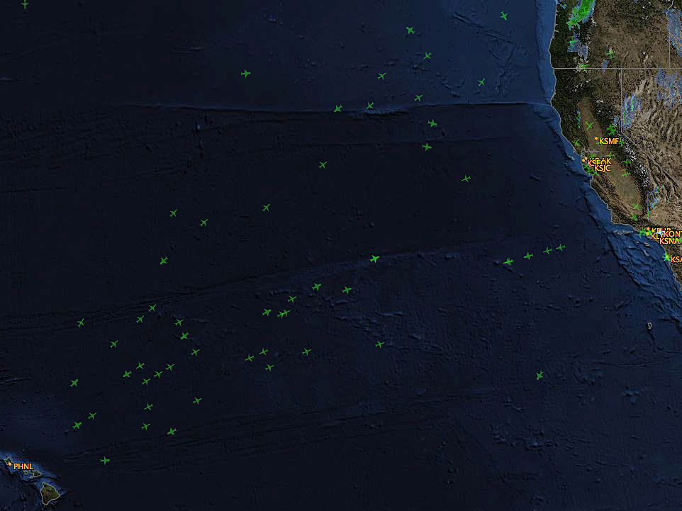 South of Greenland in the middle of the day  (these images are all derived from http://flightaware.com/live/)