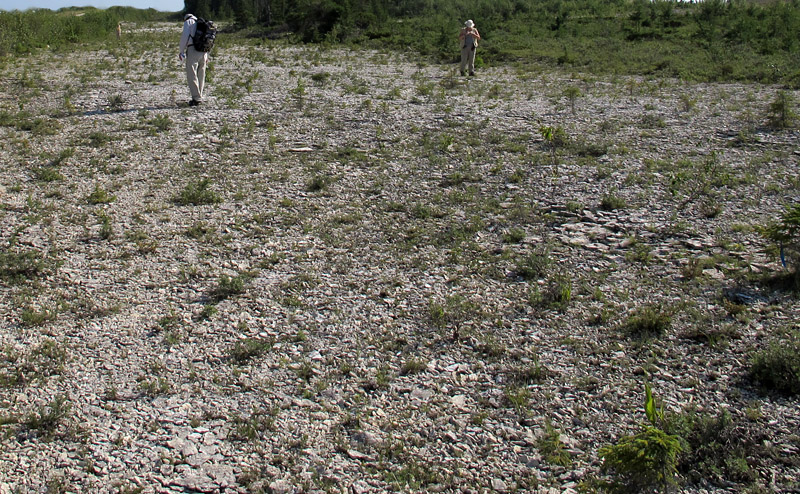 This was brought to mind by the place in these photos. In the Ordovician Stony Mountain Formation of the Grand Rapids Uplands, central Manitoba, we find a variety of fossils. In some beds, the ancient seafloor was inhabited by corals, which can even be resting in the places where they grew. Elsewhere there are abundant burrows and gastropods. But in this particular bed of clotted dolostone, the only obvious fossils are these nautiloid cephalopods that glory in the genus name Kinaschukoceras (they may belong to the species Kinaschukoceras shamattawaense; talk about a mouthful!).