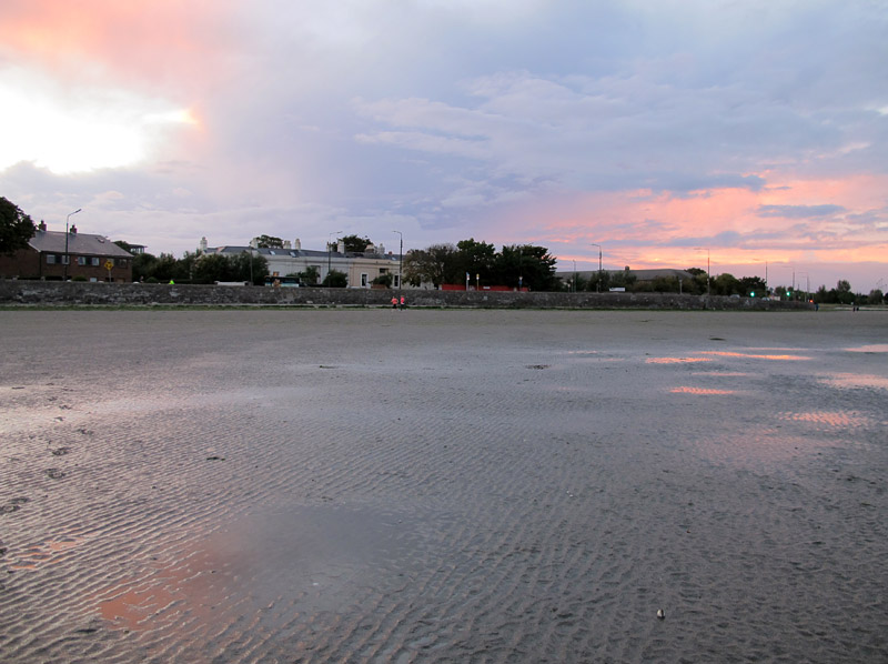 As I walked along the seawall at dusk and low tide, I was surprised by the sheer number of runners and walkers on the firm sand immediately below me. To the locals, this is clearly a place of recreation. Others might contemplate it in the context of the long history of human settlement in the Dublin area, or maybe consider its literary significance as a setting for James Joyce’s Ulysses.