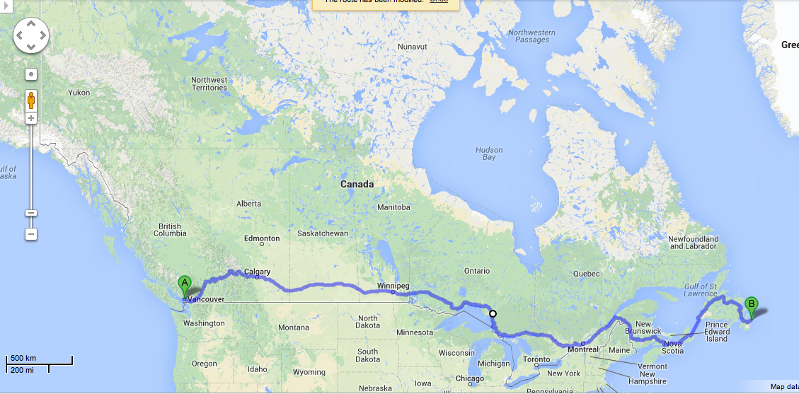 The Trans-Canada Timeline (with thanks to Google Maps)