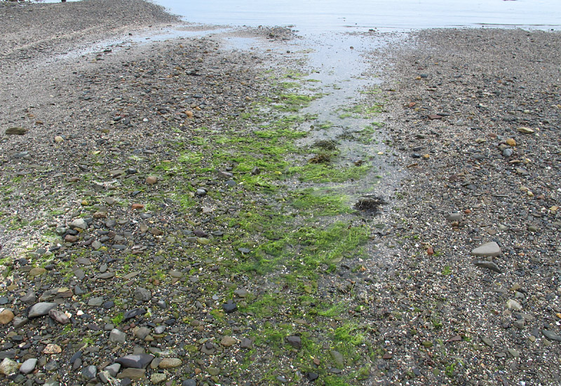 Algae in a shallow tidal flat channel, St. Andrews, New Brunswick