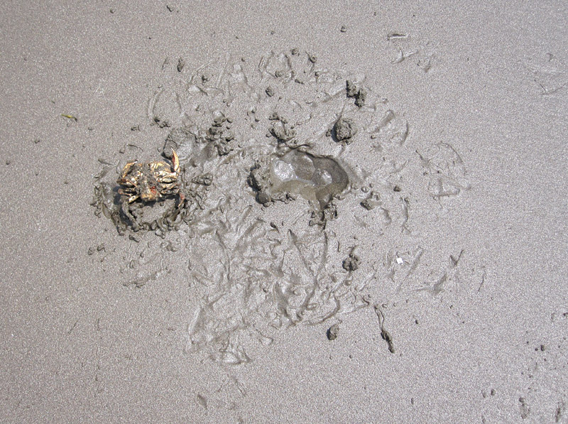 To understand how gulls predated or scavenged this crab, simply follow the footprints and traces backward.