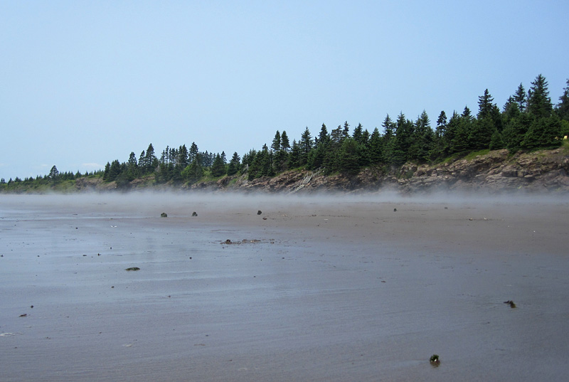 The warming sun drives the last mist from the sands of Seal Cove beach.