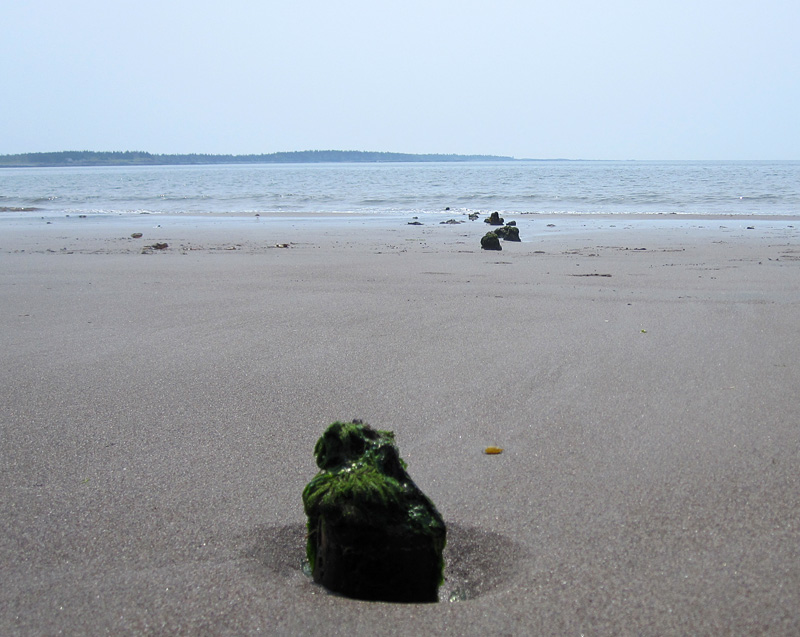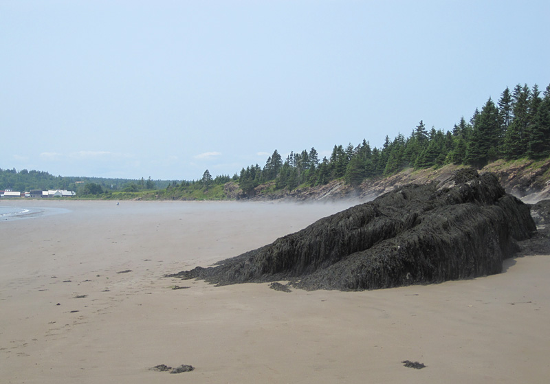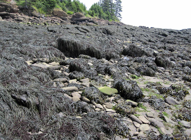 Walking on the seashore, I am often struck by the diversity that can exist in a very small area. Certainly you can observe a range of features and life forms if you walk in a forest or across a grassland, but on the shore the diversity effects are magnified and multiplied by the juxtaposition of land, air and sea. Physical forces above and below tide line act upon the water, sediment, and rock; life forms respond to this complex and dynamic system with their own complexity and dynamism. On a summer morning the beautiful sands of Seal Cove beach may seem like a peaceful, idyllic place for a walk, but even at a time like this the change is constant, and if you look you are bound to be surprised.