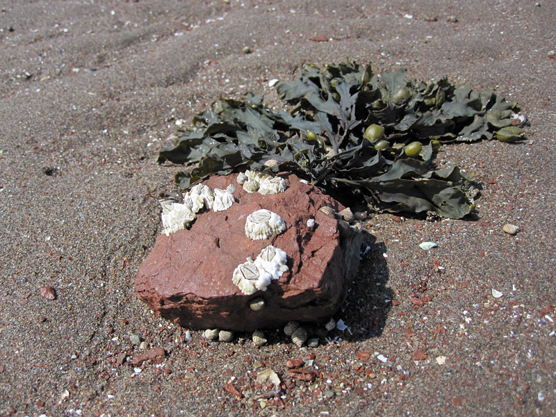 Hard substrate is clearly at a premium here, and the only barnacles that grow to adulthood are those whose larvae managed to attach to cobbles or bedrock. For the attached life forms, each patch of rocky surface is not just premium real estate. It is like an oasis in the desert, or a safe planet surrounded by inhospitable space.