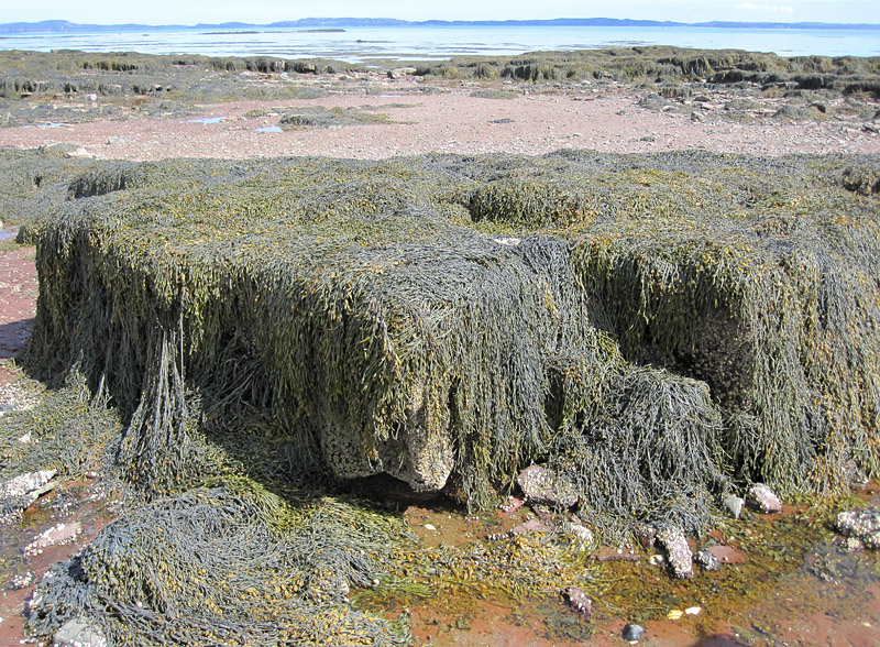 Those of us who study the ecology of long-extinct marine creatures have to work from clues: the morphologies of the fossilized organisms, the character of the enclosing sediment, and the preserved spatial relationships between fossils in bedrock. It is always pleasing to see modern examples that support our interpretations of ancient life. These photos from the shore of Passamaquoddy Bay show some very nice examples of the way in which many organisms need solid substrates.