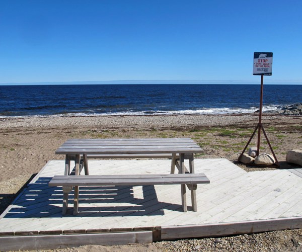 The careful juxtaposition of the picnic table and sign must have required a very special sort of thinking. You are in danger if you walk in this area, but yes, it would be just fine to have a picnic. Please don’t forget to bring sardines for the bears. Polar bears like sardines.