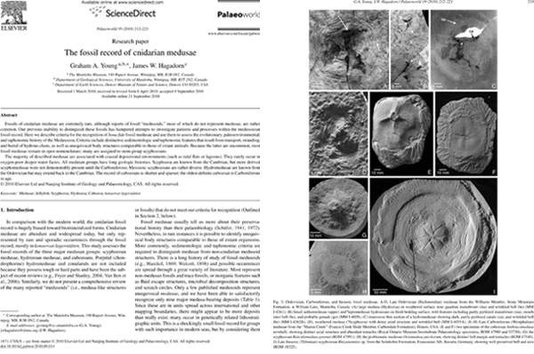 3. This is a pdf of a paper co-authored with Whitey Hagadorn, about the jellyfish fossil record. It was published in 2010 in Palaeoworld: